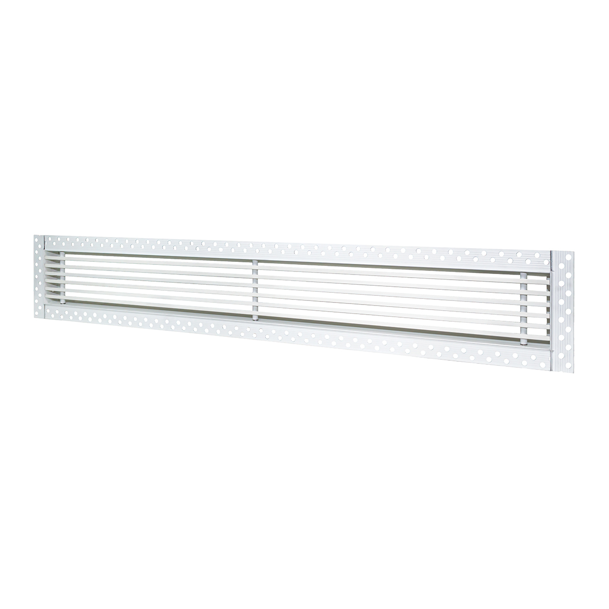 Данная решетка подходит для монтажа на любую поверхность под финишную отделку. Рамка и экран изготовлены из алюминия, опора экрана - из оцинкованной стали. Рама оснащена «полкой» 1,9 мм и рифлеными краями для большей адгезии финишного материала – шпатлевки, цемента. Решетка имеет съемную центральную часть с фиксированным углом наклона ламелей 0°. Она крепится к корпусу прочными металлическими тросиками, легко снимается для очистки и удобного обслуживания.