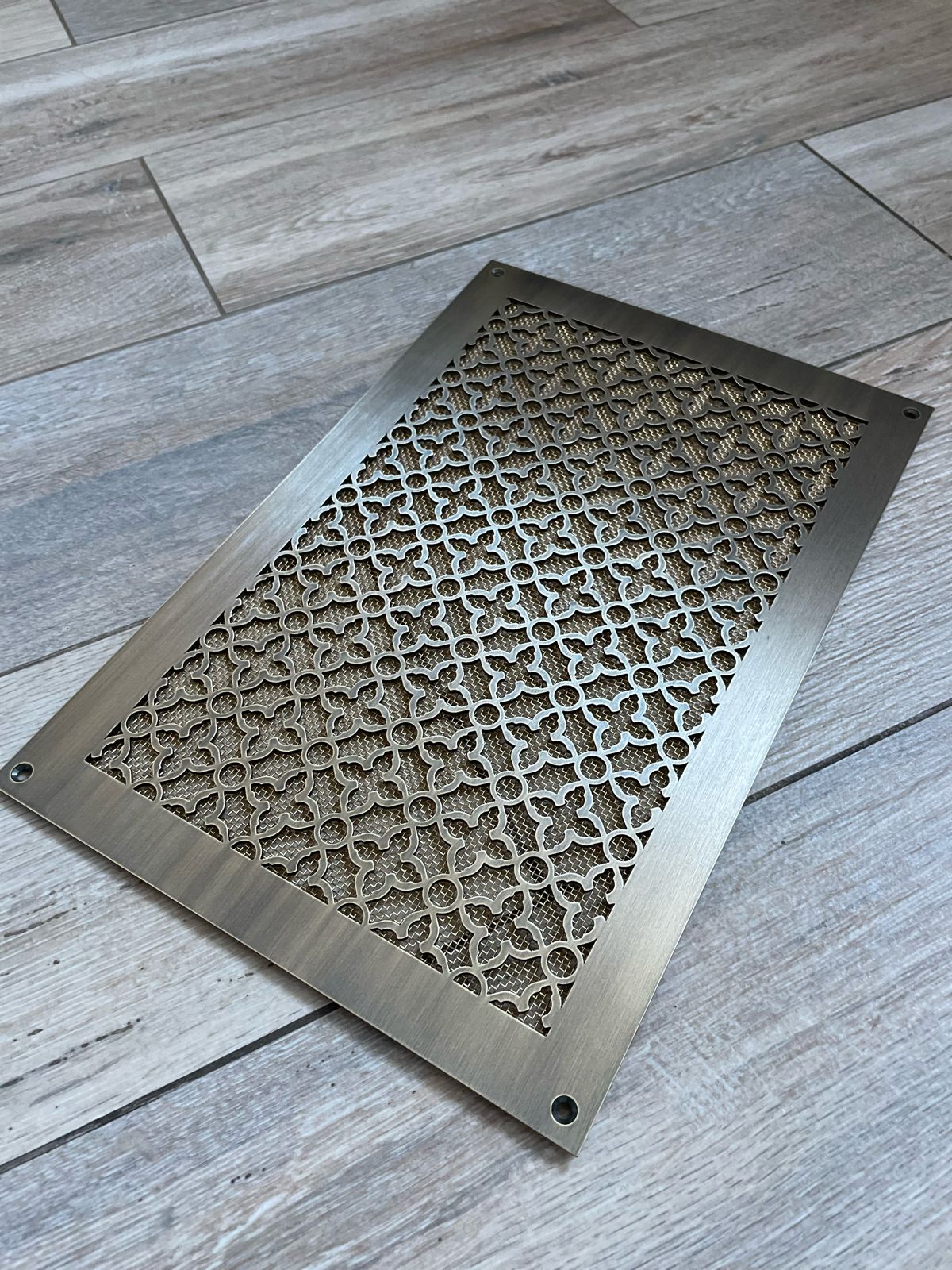 - Это может быть накладная вентиляционная решётка или решётка с крепежом на магнитах, зажимах-защёлках, саморезах. Изготавливается на заказ по индивидуальным размерам.
