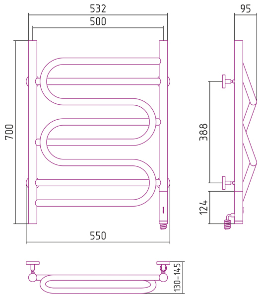 Полотенцесушитель электрический Сунержа Иллюзия 700x500