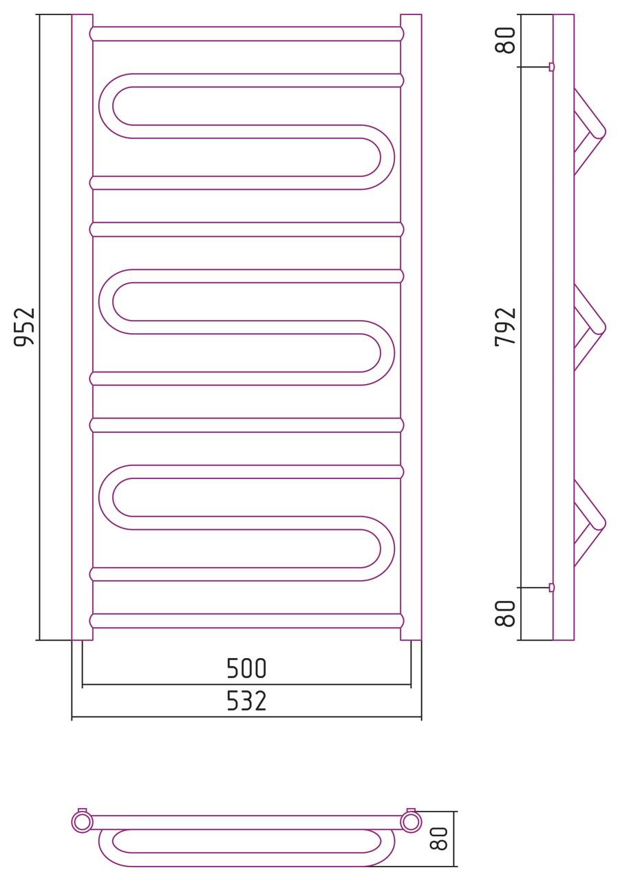 Размер полотенцесушителя:1000x500