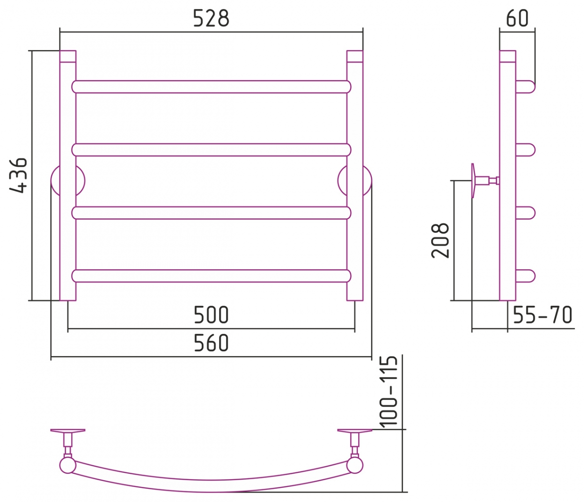 Полотенцесушитель водяной Стилье Универсал-50 500x500