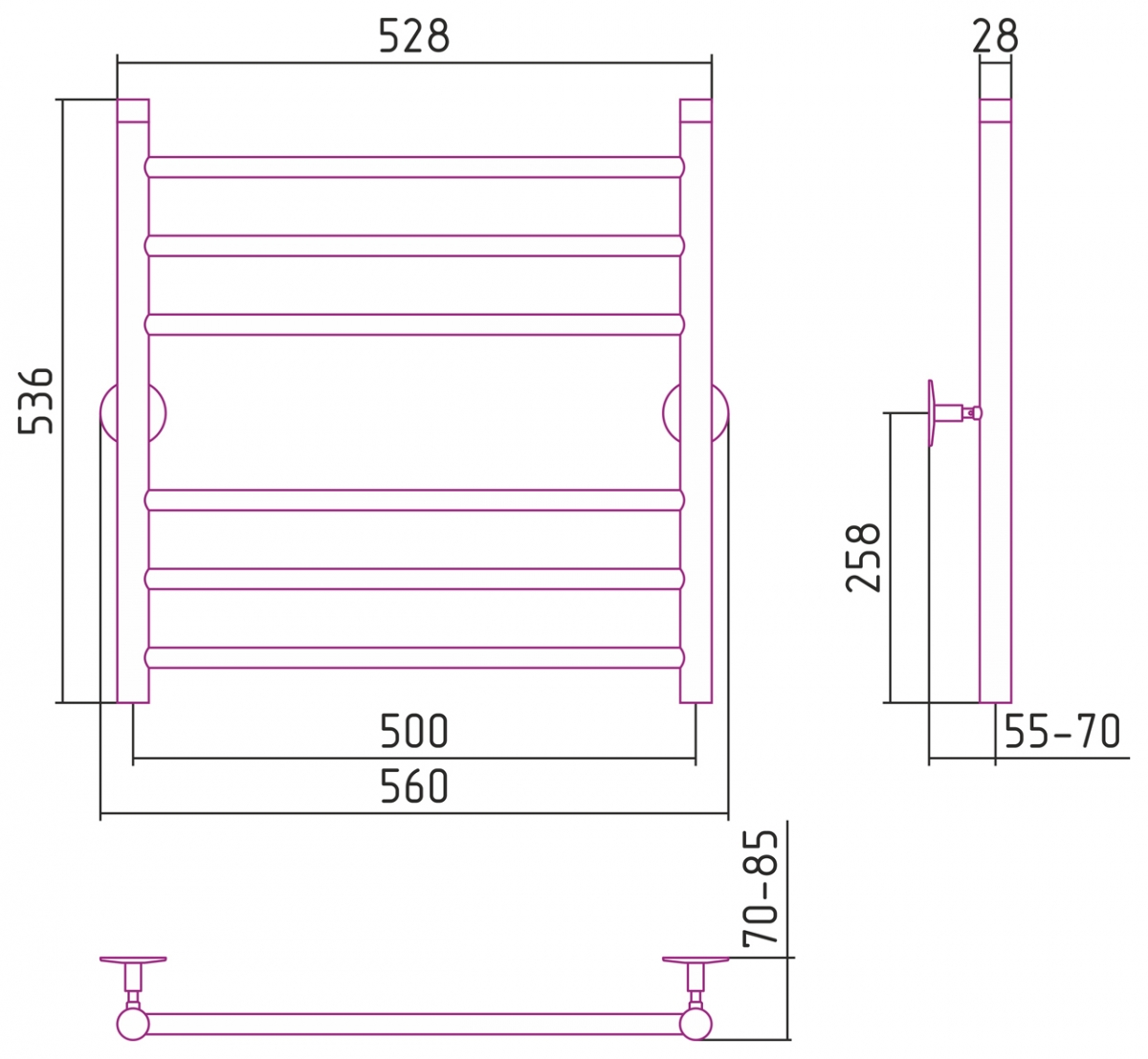 Полотенцесушитель водяной Стилье Универсал-55 600x500