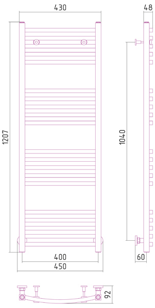 Внешние габариты (высота х ширина х глубина) (мм) : 1207 х 450 х 92
