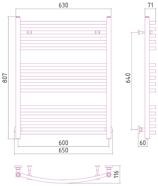 Полотенцесушитель водяной Сунержа Аркус 800x600