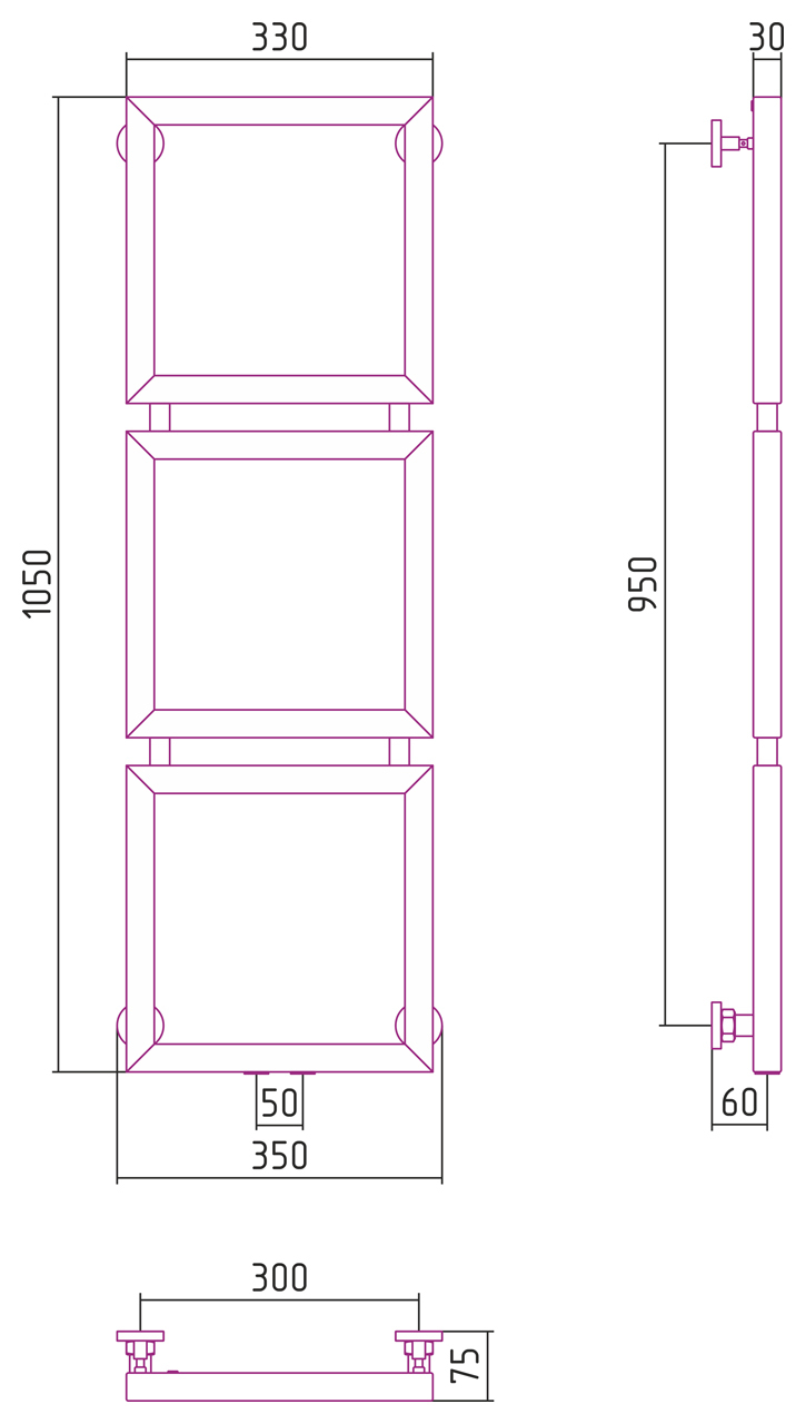Внешние габариты (высота х ширина х глубина) (мм) : 1050x350x75