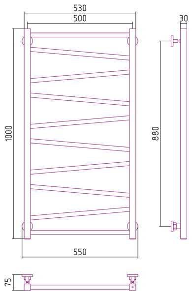 Внешние габариты (высота х ширина х глубина) (мм) : 1000х550х75